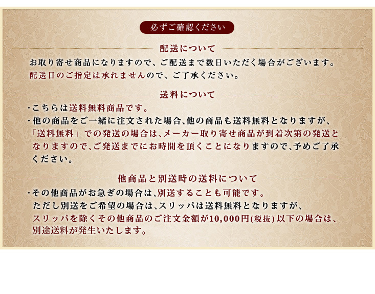 その他商品がお急ぎの場合は、こちらのスリッパと同梱商品の別送することも可能です。
