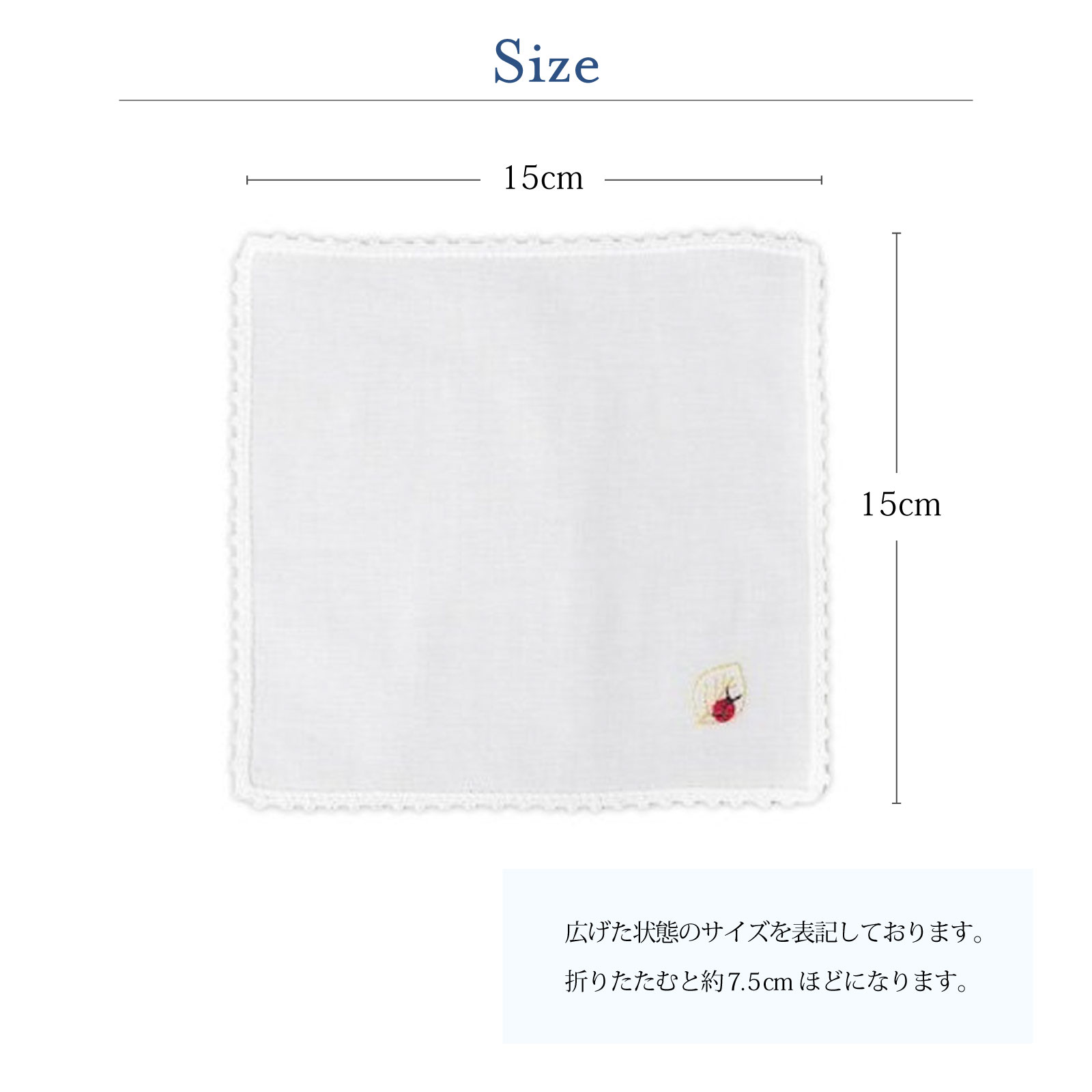手刺繍 ピコレース綿ハンカチ てんとう虫