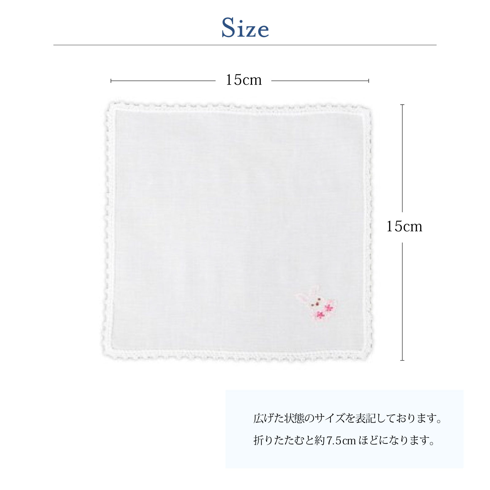 手刺繍 ピコレース綿ハンカチ うさぎ