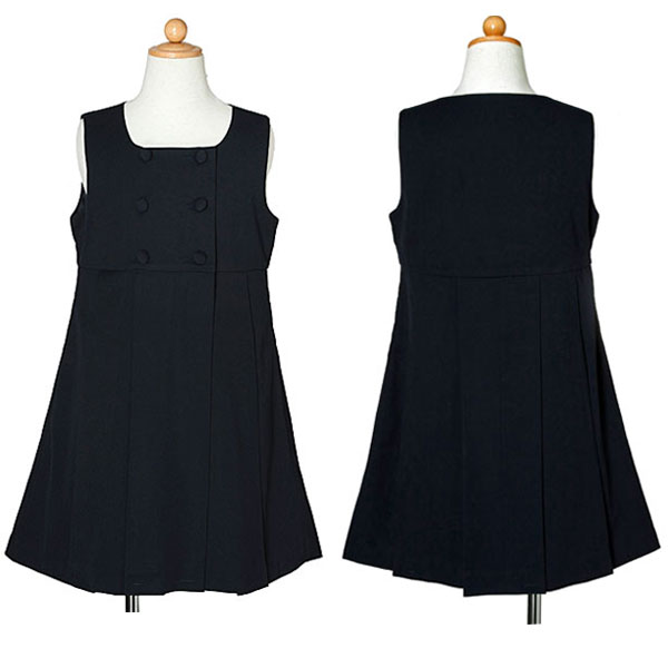 お受験用品のハッピークローバー > お子様用お洋服 > お着替えしやすい くるみダブルボタン・タックワンピース 紺 両サイドポケット付き ウォッシャブル 90 95 100 110 120 130