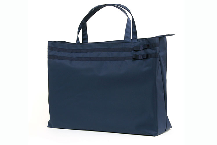 ナイロンツイル口元ファスナー開きビッグトート グログランリボン2段(横幅46cm)